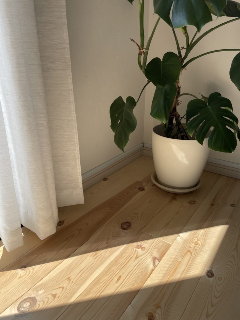 20帖ほどあるリビング・ダイニングを全て無垢床(パイン材)にしており圧巻でした。