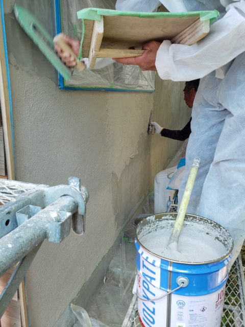 数日前にK様と一緒に外壁のジョリパットのパターン決めと少しだけ施工させてもらいました!!