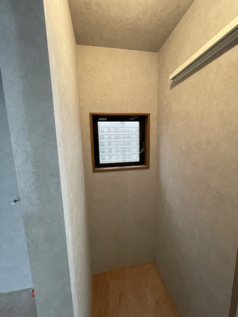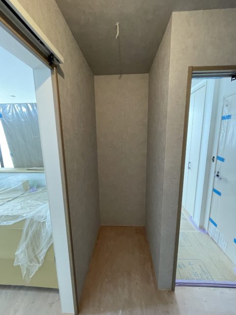 また洗面所とパントリー部分も壁紙が施工されておりグレー色の壁と天井は一気に引き締まった感じになりました。
