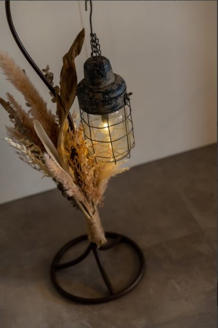 さてさて、1階ホールにはドライフラワーシャンデリアの新作が入荷しています。