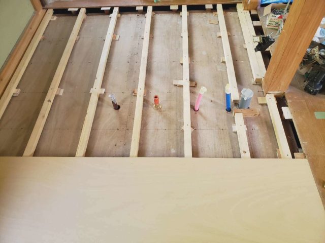 1階のUBに忍ばせていた給水を引っ張り出し。排水と給湯も新規で設置しました。