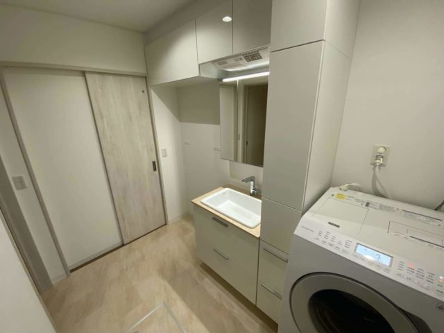 元は洗面化粧台と洗濯機が逆に配置しており、