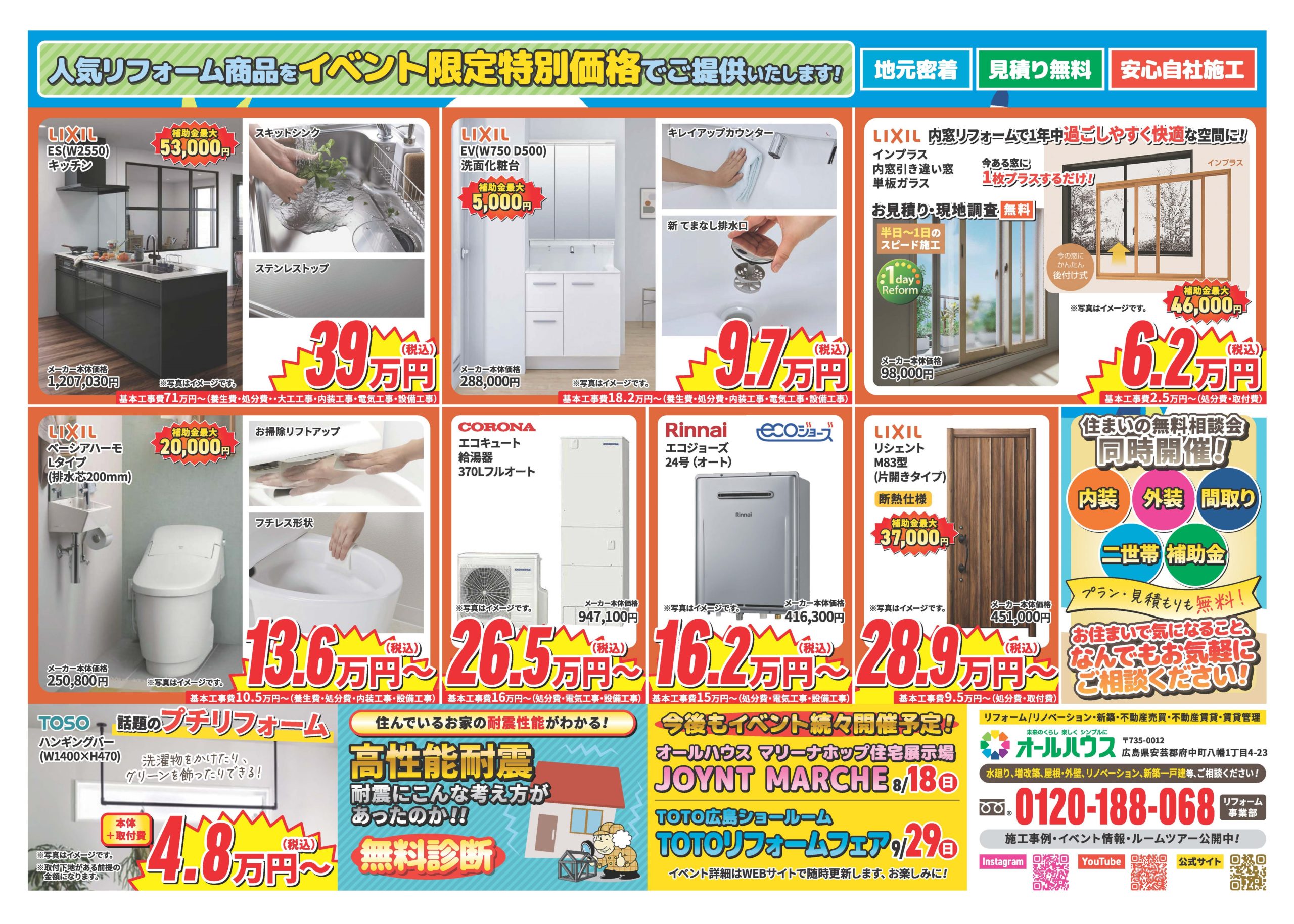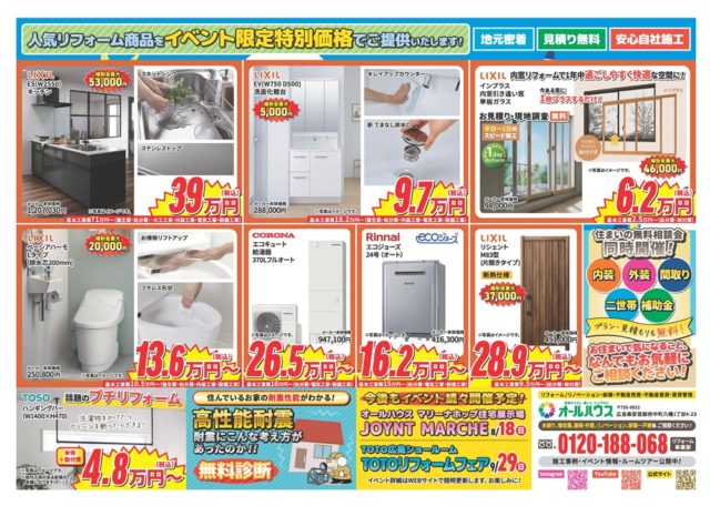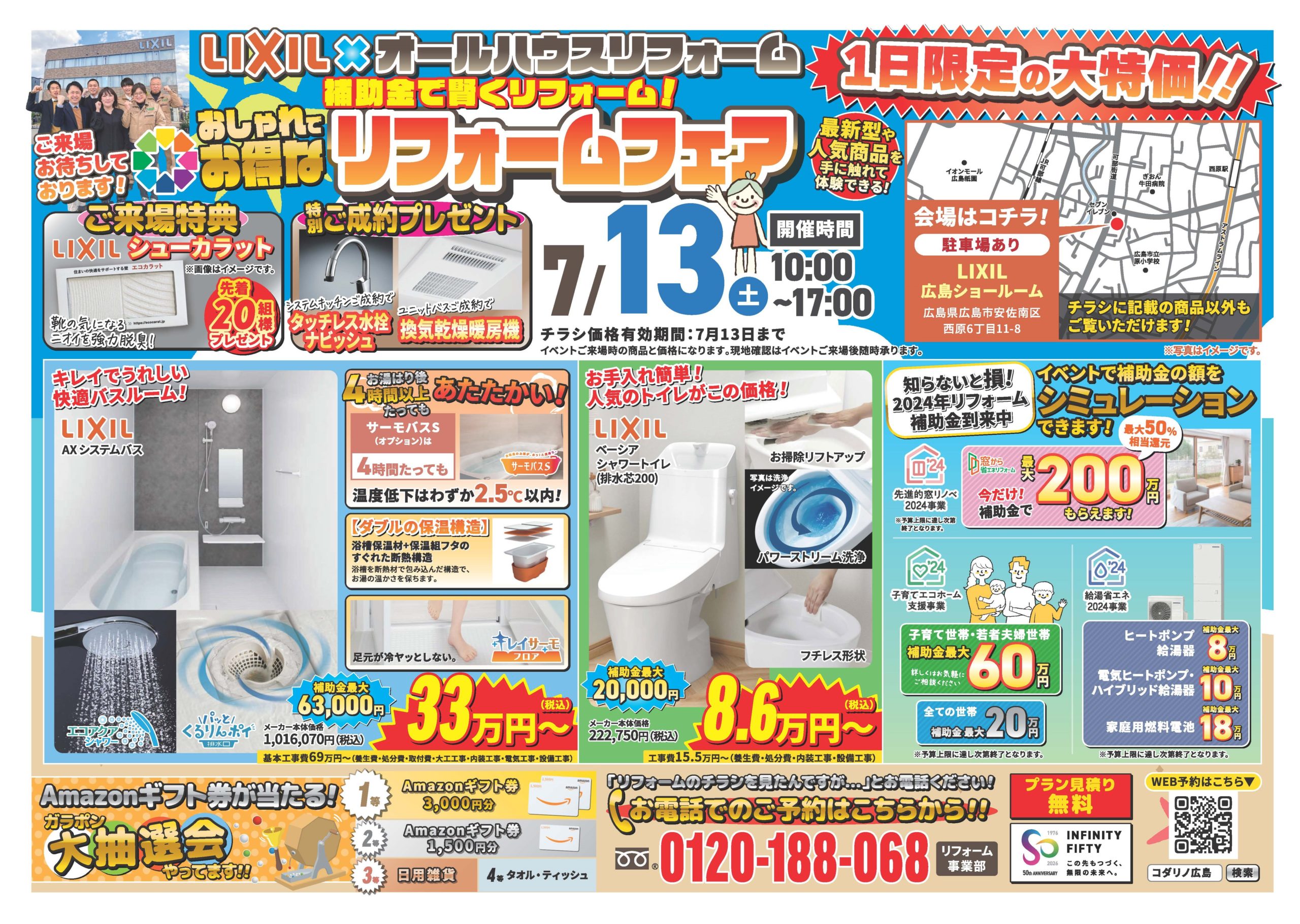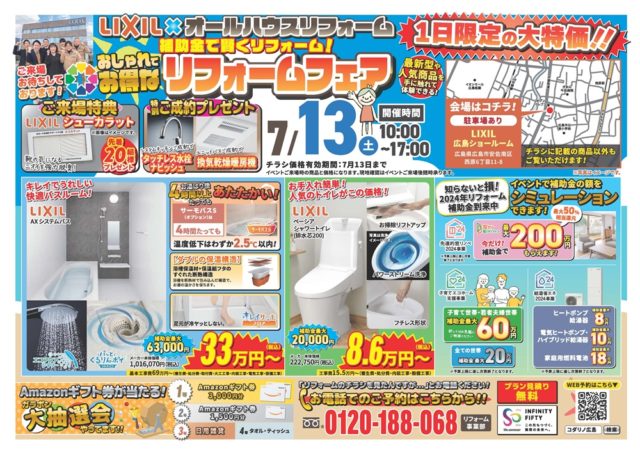 そして、7月13日(土)はLIXIL広島ショールームにてリフォームフェアを開催します。