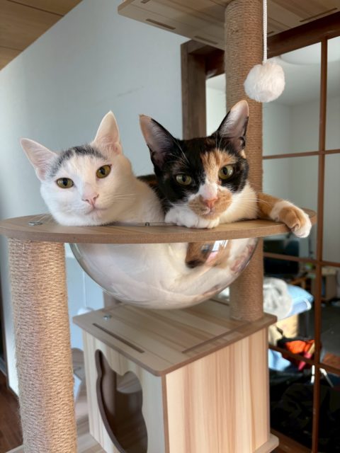 息子が連れて帰ってきた兄弟ネコちゃんですが、こんな狭い所に仲良く(笑)!!
